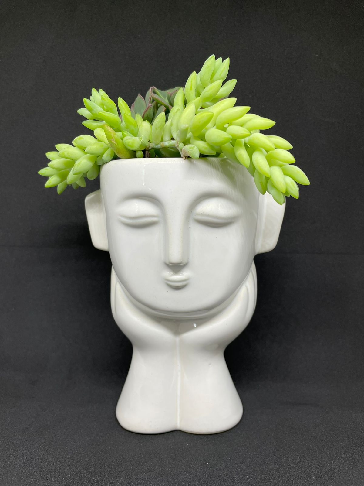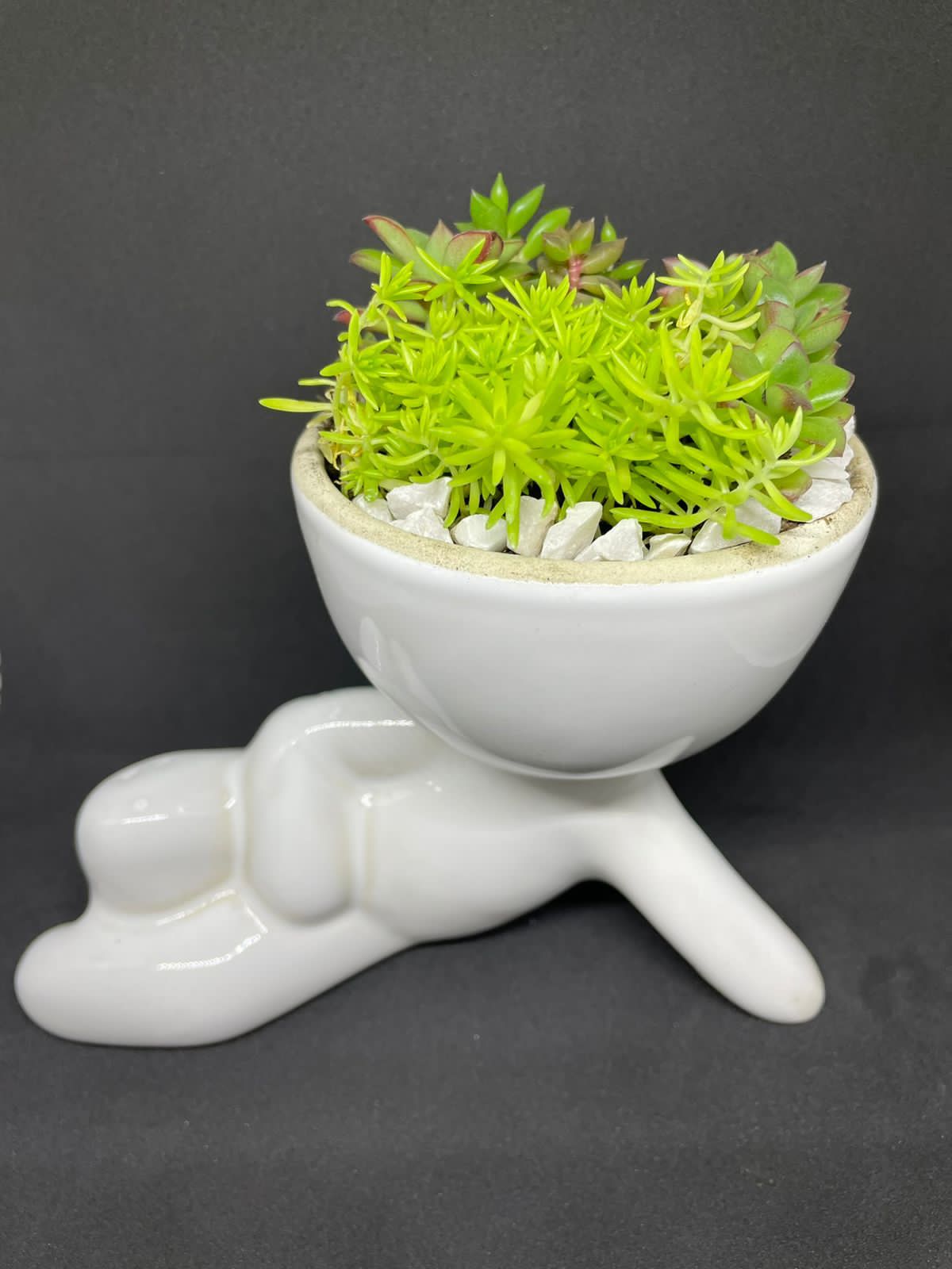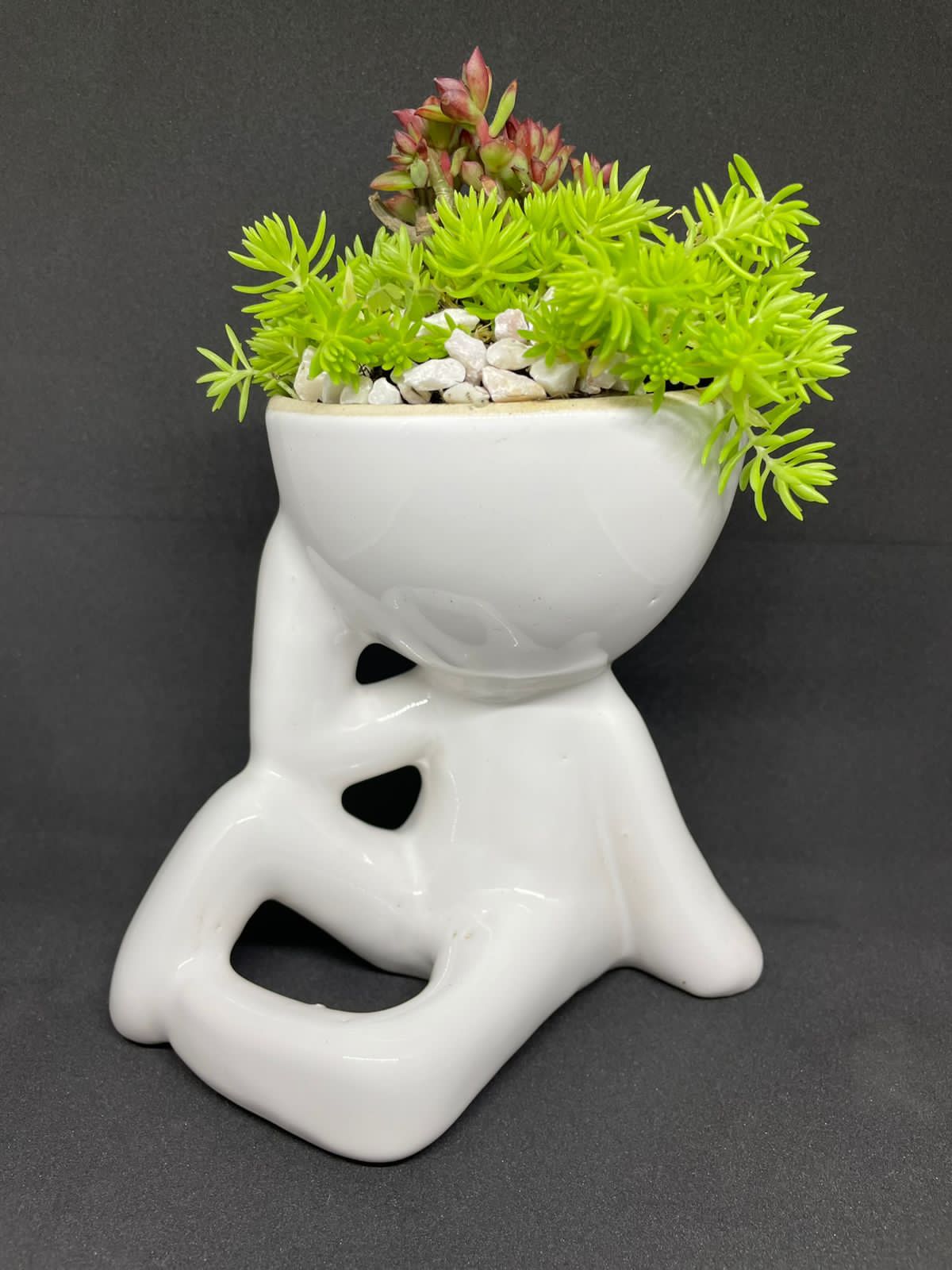 Maceta esmaltada en rosa, para colocar la plantita de su gusto. No incluye planta.